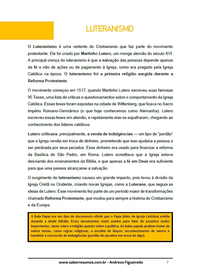 010 - História - As Reformas Religiosas - O Luteranismo - 7º ano - PDF com 17 páginas