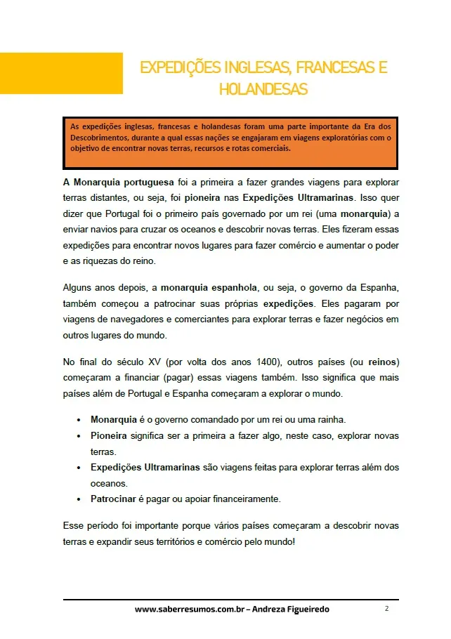 026 - História - As Grandes Navegações - Expansão Marítima - Inglaterra, França e Holanda - 7º ano - PDF com 17 páginas