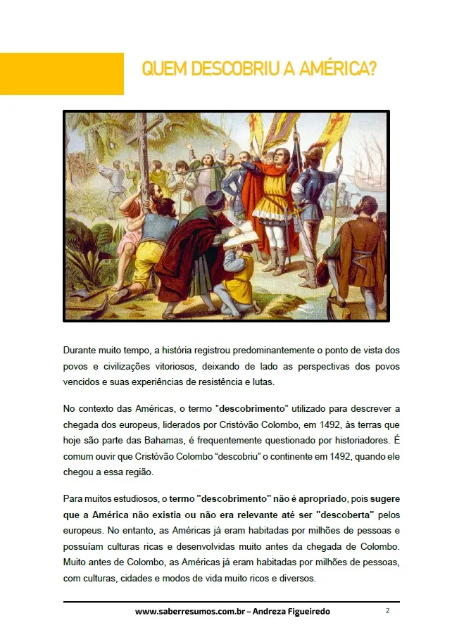 033 - História - O Processo de Colonização da América - Quem Descobriu a América? - 7º ano - PDF com 10 páginas