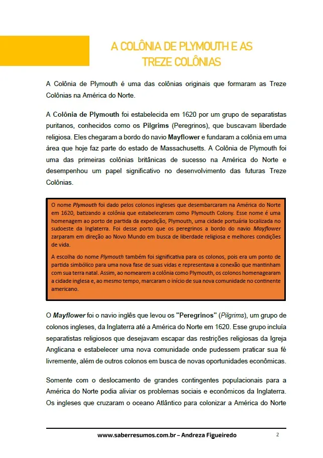 040 - História - A Colonização Inglesa na América - Colônia de Plymouth e as Treze Colônias - 7º ano - PDF com 23 páginas