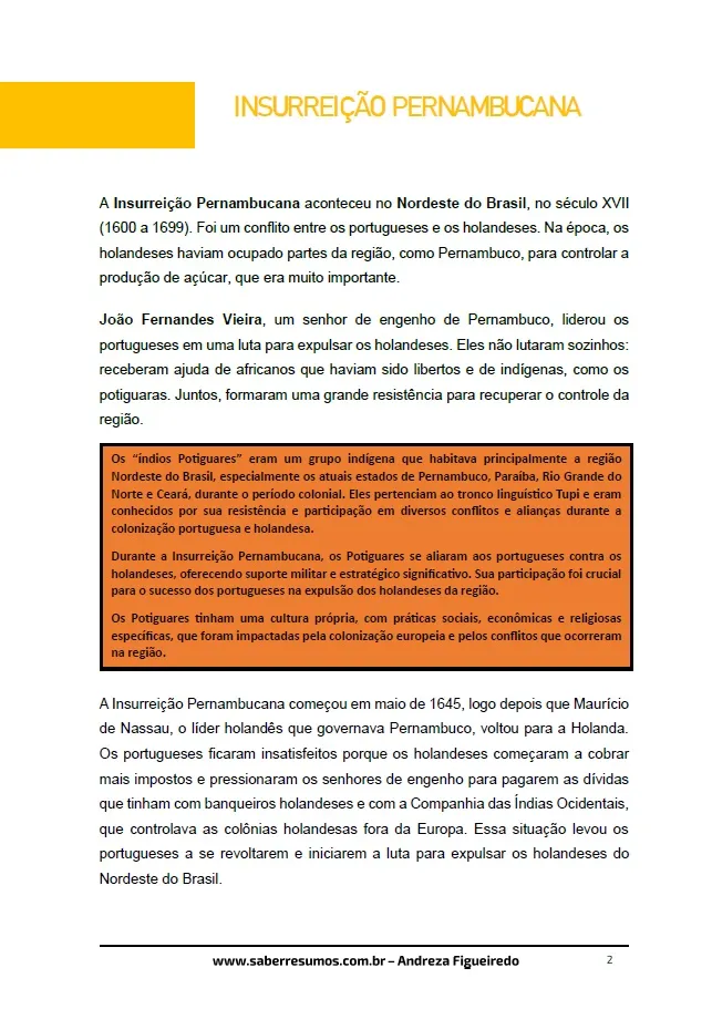 049 - História - A Colonização da América Portuguesa - Insurreição Pernambucana - 7º ano - PDF com 5 páginas