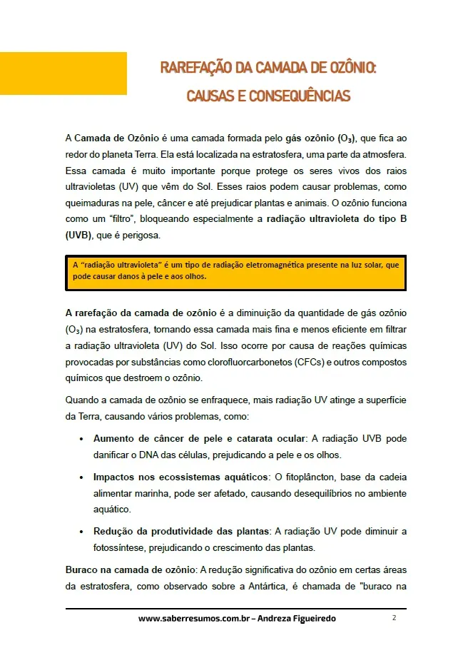 074 - Ciências - As Mudanças da Atmosfera e o Ar das Cidades - A Rarefação da Camada de Ozônio - 7º ano - PDF com 6 páginas