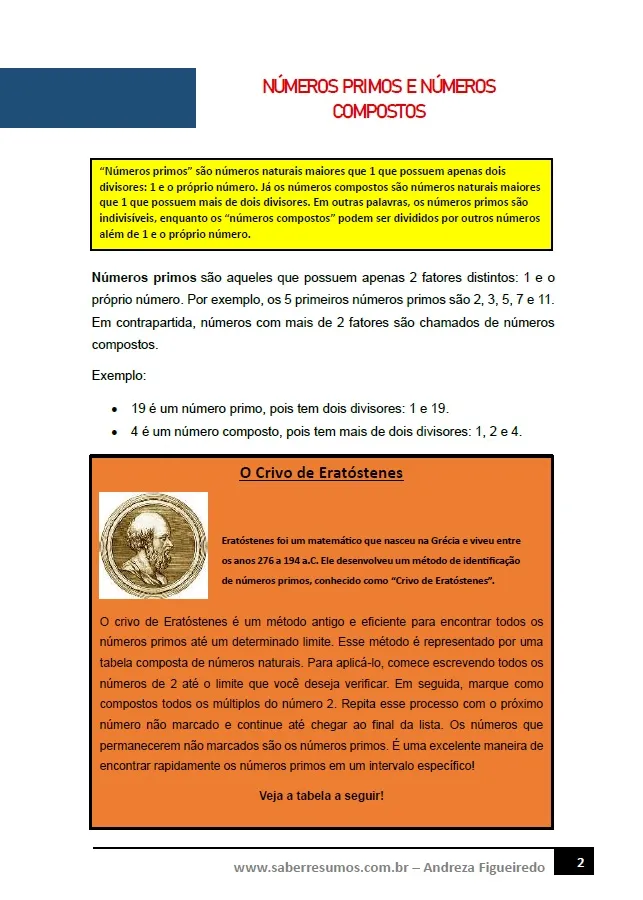 165 - Matemática - Números Primos e Números Compostos - Decomposição de um Número em Fatores Primos - 7º ano - PDF com 6 páginas