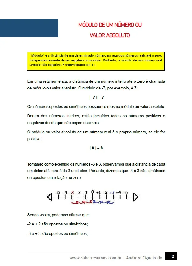 169 - Matemática - Módulo de um Número - 7º ano - PDF com 4 páginas