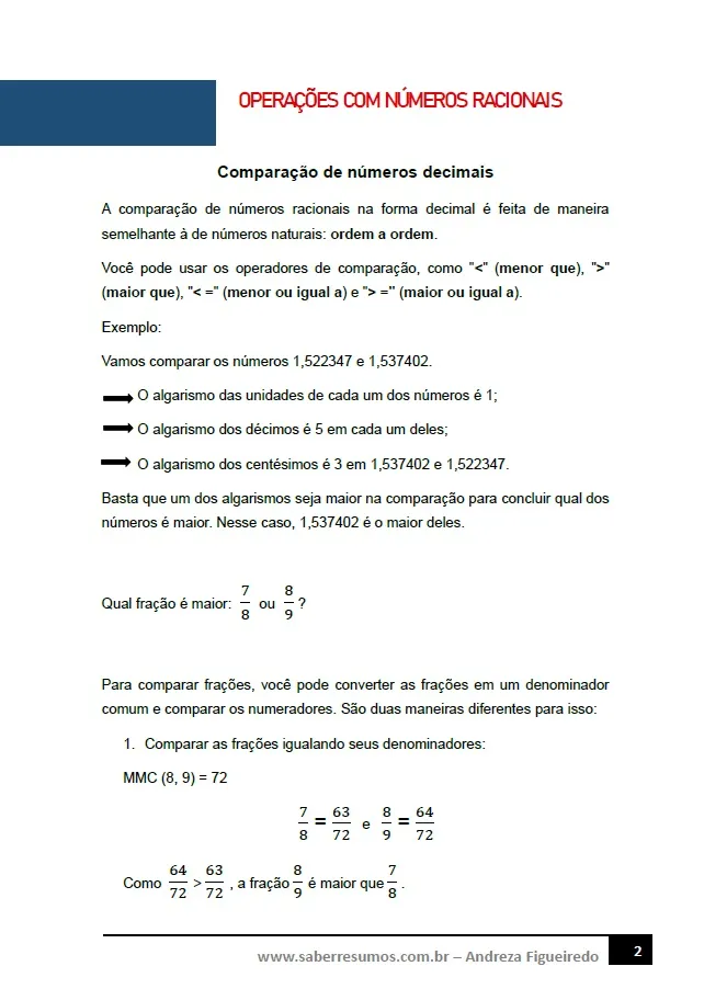 178 - Matemática - Operações com Números Racionais - 7º ano - PDF com 11 páginas