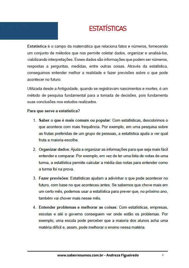 191 - Matemática - Estatísticas - 7º ano - PDF com 18 páginas Imagem