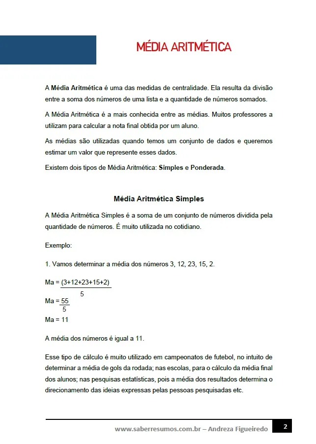 192 - Matemática - Média Aritmética Simples - Média Aritmética Ponderada - 7º ano - PDF com 4 páginas