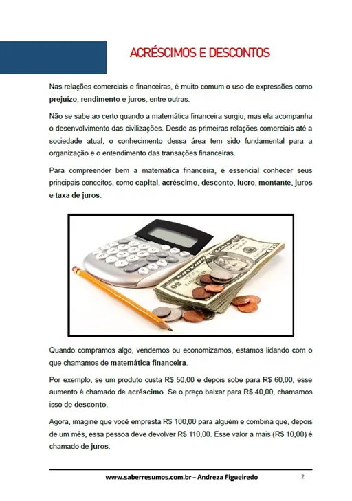 196 - Matemática - Matemática Financeira - Acréscimos e Descontos - 7º ano - PDF com 17 páginas