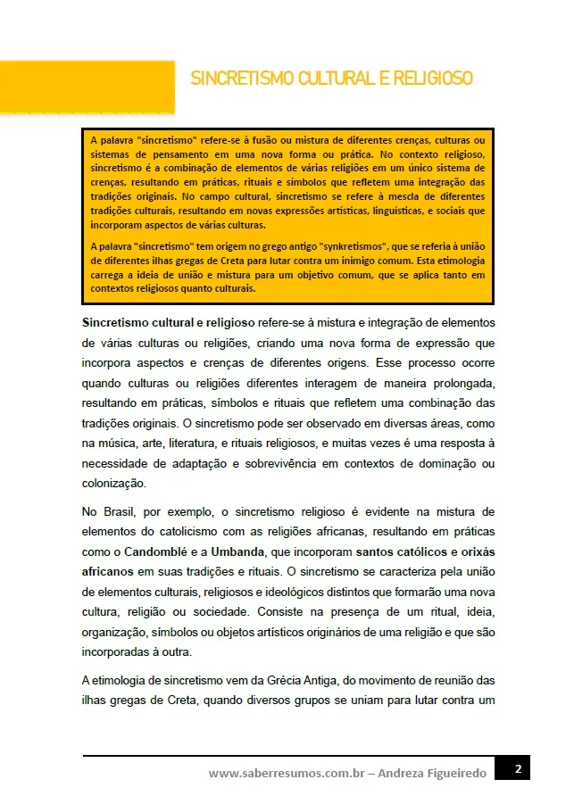210 - Arte - Influência Africana nas Artes - Sincretismo Cultural e Religioso - 7º ano - PDF com 8 páginas