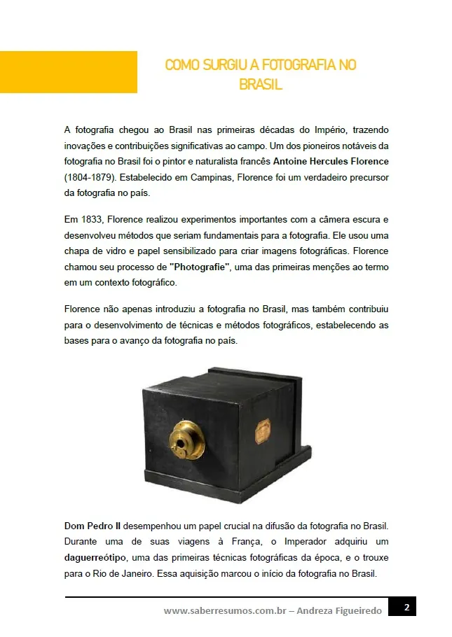 212 - Arte - Fotografia - Surgimento da Fotografia no Brasil - 7º ano - PDF com 6 páginas