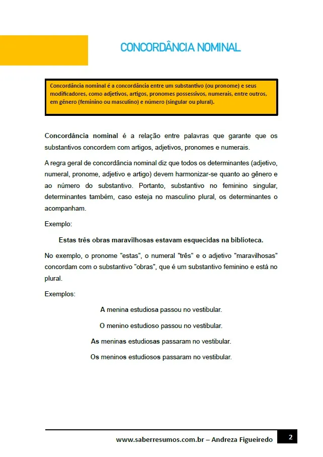 222 - Português - Gramática - Concordância Nominal - 6º ano - PDF com 3 páginas