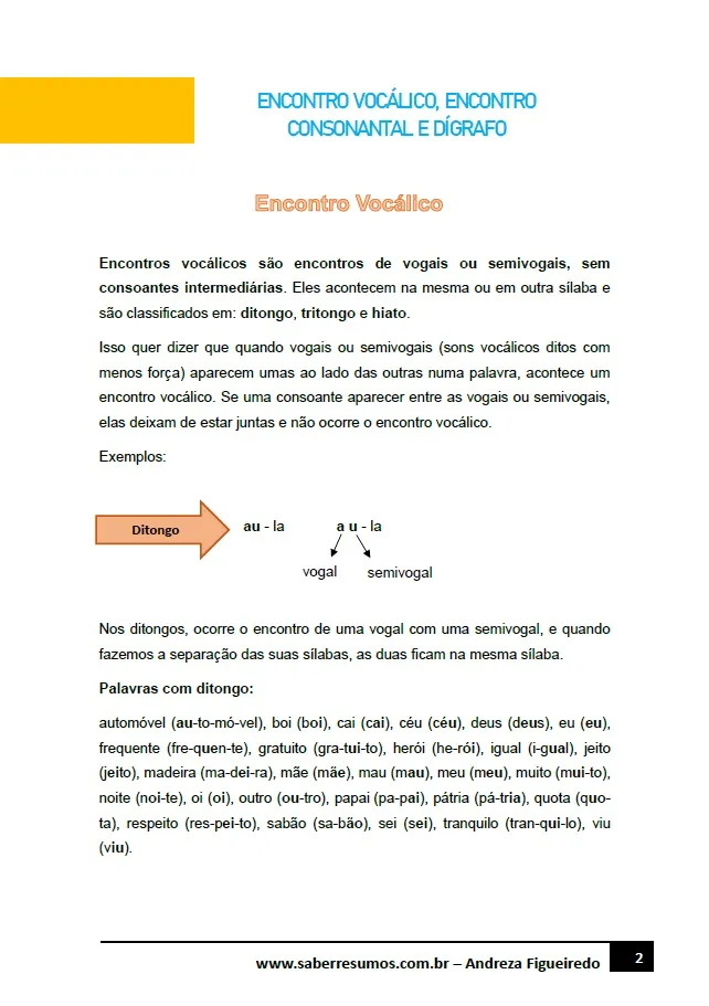 234 - Português - Gramática - Encontro Vocálico, Encontro Consonantal e Dígrafo - 6º ano - PDF com 31 páginas