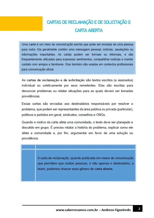 245 - Português - Produção Textual - Cartas - Cartas de Reclamação e de Solicitação e Carta Aberta - 6º ano - PDF com 8 páginas