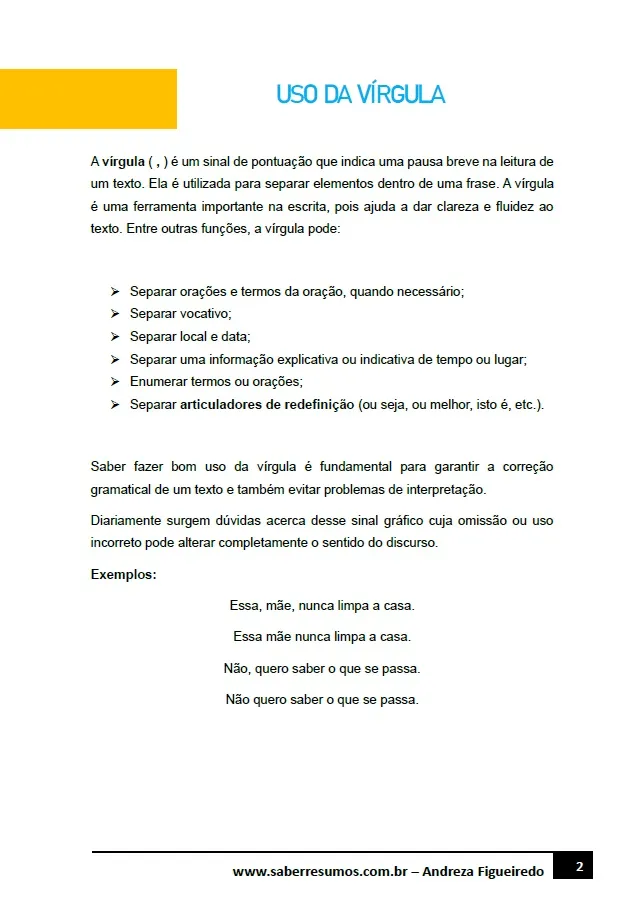 250 - Português - Gramática - Uso da Vírgula - 6º ano - PDF com 4 páginas