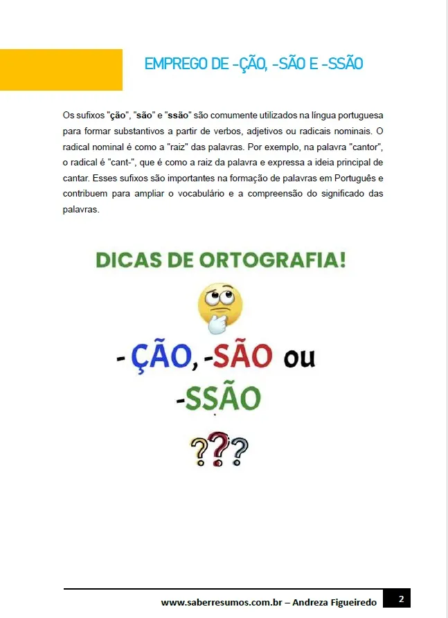 340 - Português - Gramática - Emprego de -ÇÃO, -SÃO e -SSÃO - 5º ano - PDF com 3 páginas