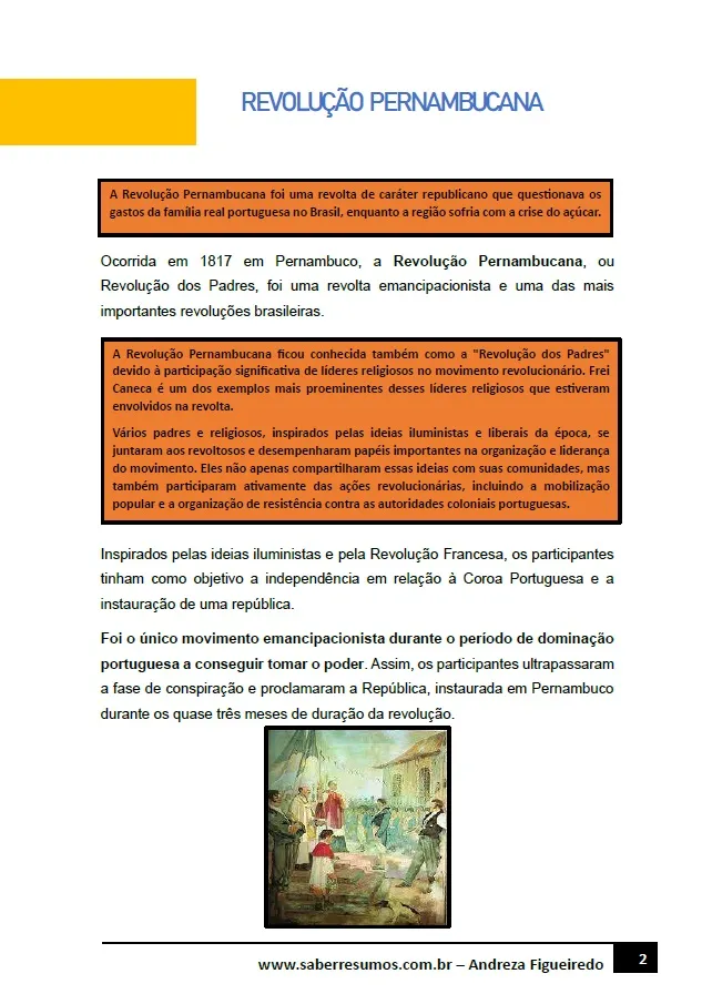 409 - História - Processo de Emancipação Política da América Portuguesa - Revolução Pernambucana - 8º ano - PDF com 7 páginas