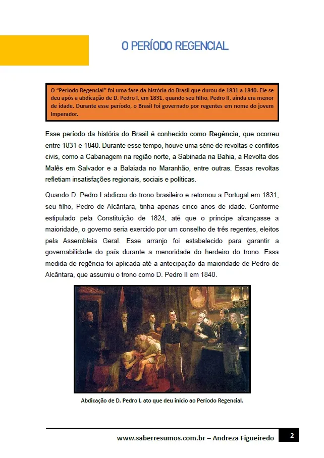 413 - História - Processo de Emancipação Política da América Portuguesa - O Período Regencial - 8º ano - PDF com 11 páginas