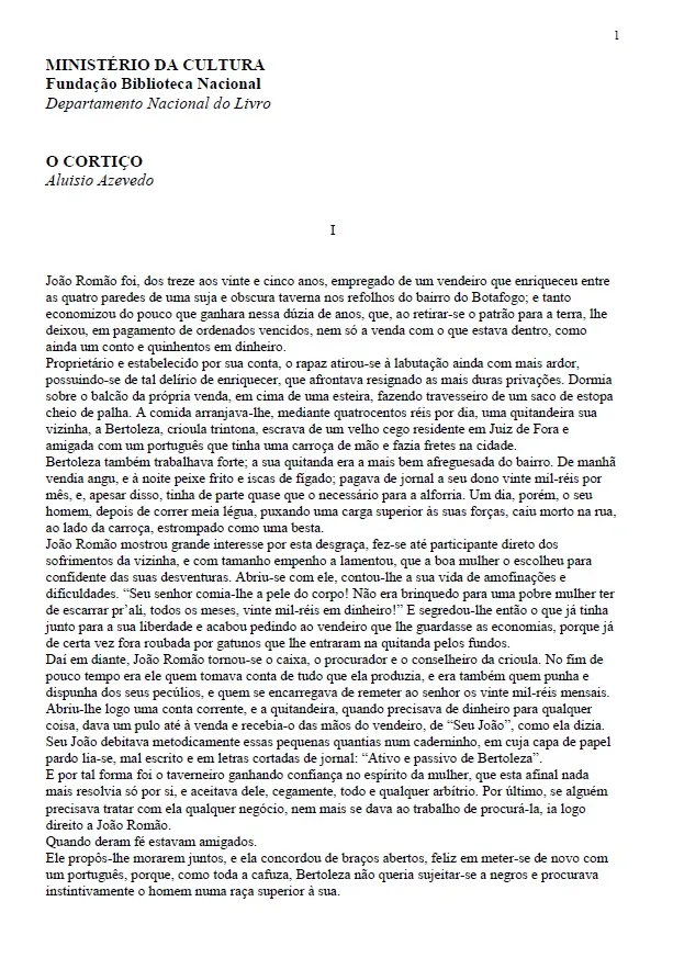 586 - O Cortiço - Aluísio Azevedo - E-Book completo em PDF - 122 páginas