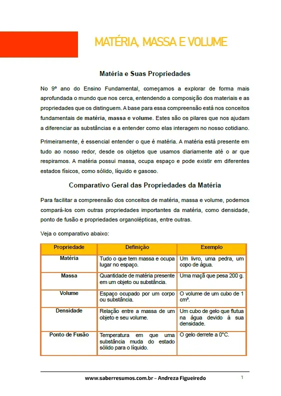 631 - Química - A Matéria e suas Propriedades - Conceito de Matéria: Matéria, Massa e Volume - 9º ano - PDF com 8 páginas