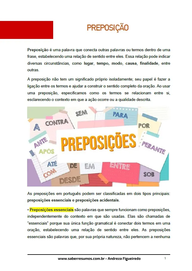 646 - Português - Gramática - Classe de Palavras - Preposição - 9º ano - PDF com 6 páginas