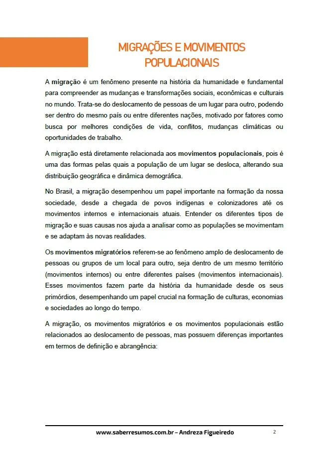 698 - Geografia - População Mundial e Questões Demográficas - Migrações e Movimentos Populacionais - 9º ano - PDF com X páginas