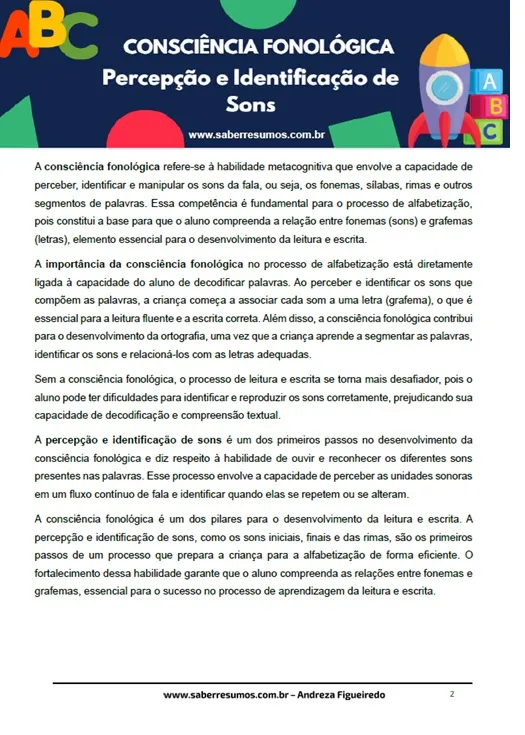 735 - Alfabetização - Consciência Fonológica - Bloco 1 - Percepção e Identificação de Sons - PDF com 145 páginas