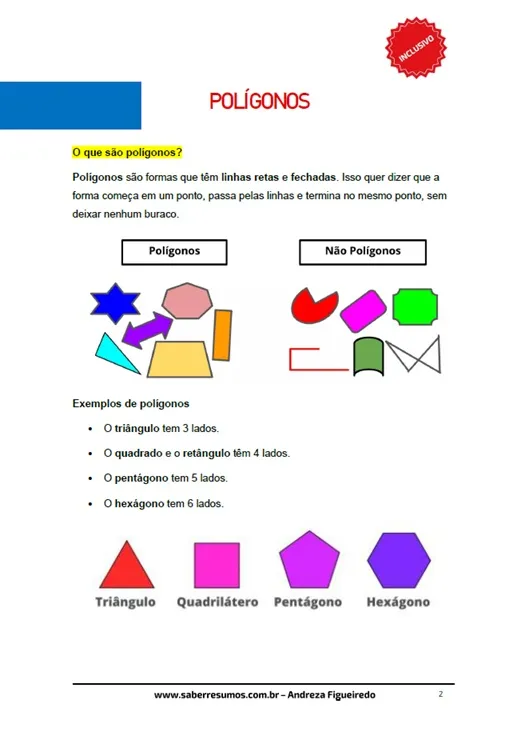 751 - Matemática - Aprendizado Inclusivo - Polígonos - 6º ano - PDF com 11 páginas