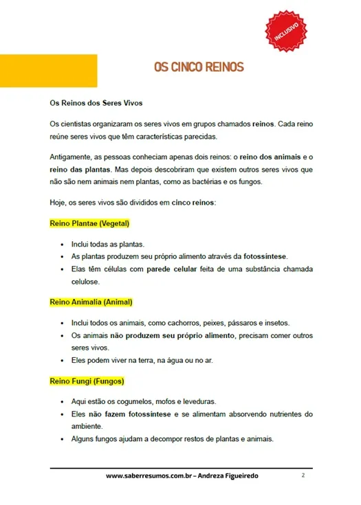 764 - Ciências - Aprendizado Inclusivo - A Vida e a Diversidade - Classificação dos Seres Vivos em Cinco Reinos - 7º ano - PDF com 19 páginas