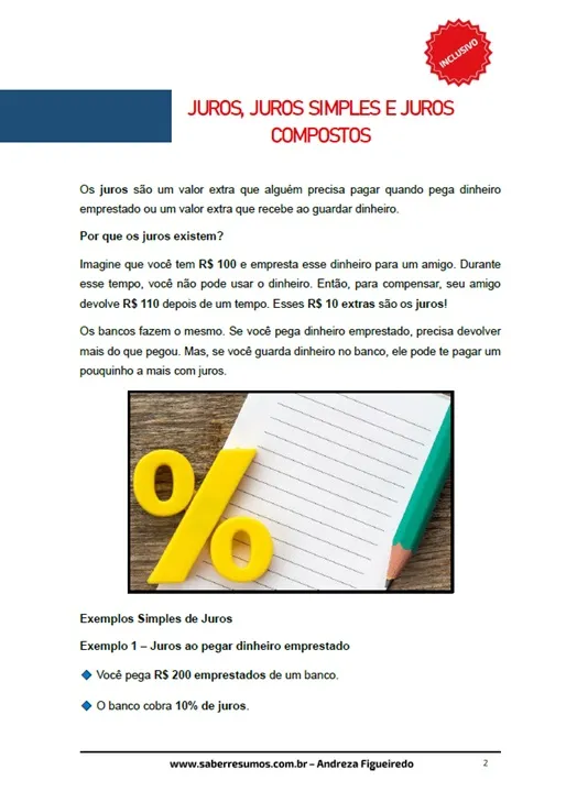 790 - Matemática - Aprendizado Inclusivo - Matemática Financeira - Juros, Juros Simples e Juros Compostos - 7º ano - PDF com 8 páginas