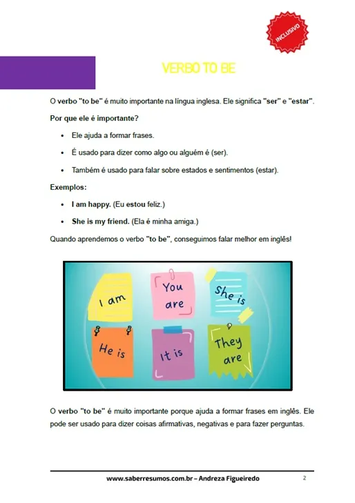 792 - Inglês - Aprendizado Inclusivo - Estruturas Gramaticais - Verbo To Be - 6º ano - PDF com 12 páginas