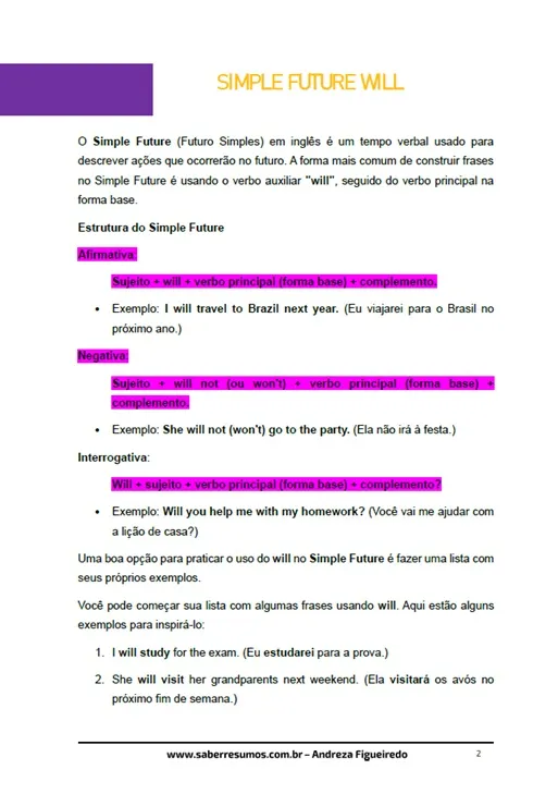 808 - Inglês - Tempos Verbais - Simple Future Will - 8º ano - PDF com 8 páginas