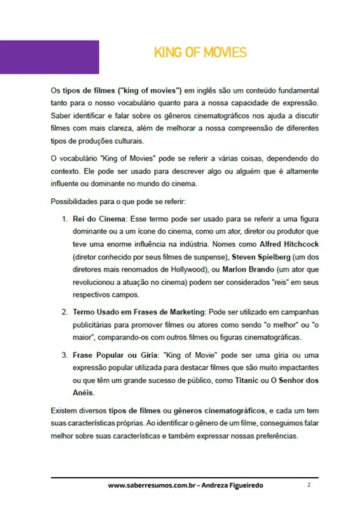 822 - Inglês - Vocabulário - King of Movies - 9º ano - PDF com 14 páginas
