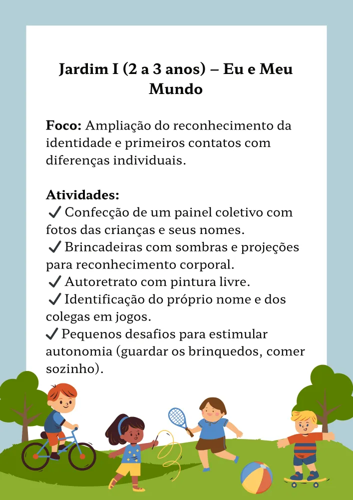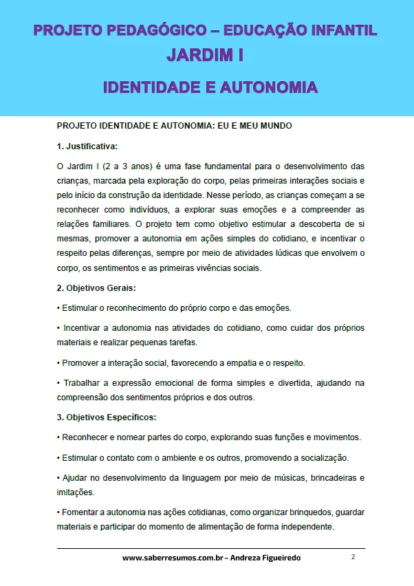 842 - Projeto Pedagógico - Educação Infantil - Jardim I - Identidade e Autonomia - PDF com 17 páginas