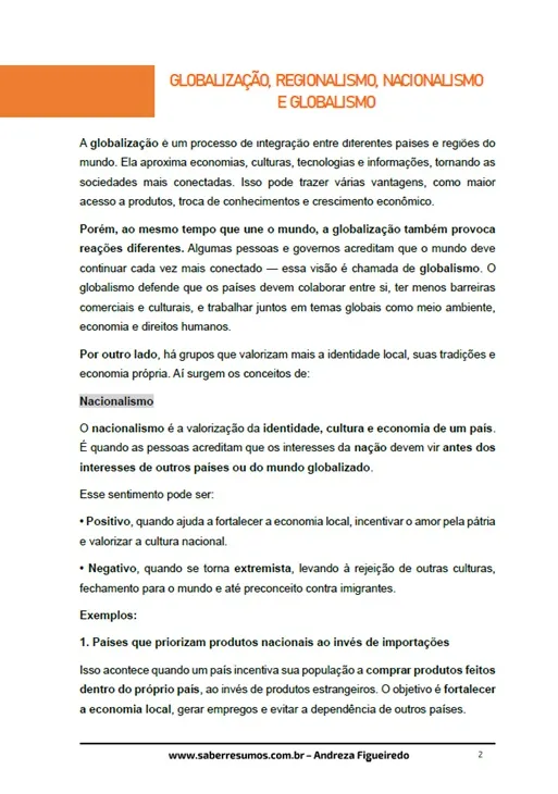 853 - Geografia - Geografia Geral e Atualidades - Globalização, Regionalismo, Nacionalismo e Globalismo - 9º ano - PDF com 11 páginas