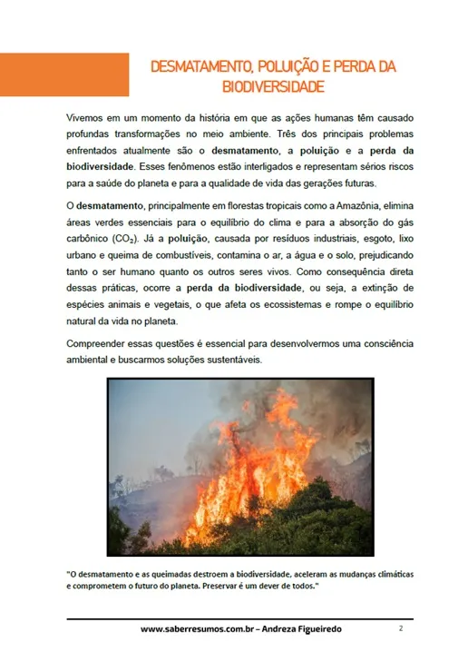866 - Geografia - Meio Ambiente e Impactos Ambientais - Desmatamento, Poluição e Perda da Biodiversidade - 9º ano - PDF com 16 páginas