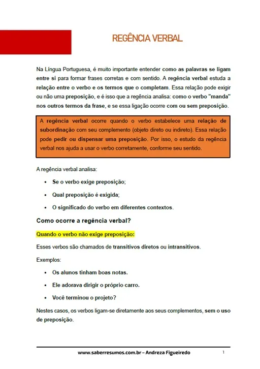 893 - Português - Gramática - Sintaxe - Regência Verbal - 9º ano - PDF com 15 páginas